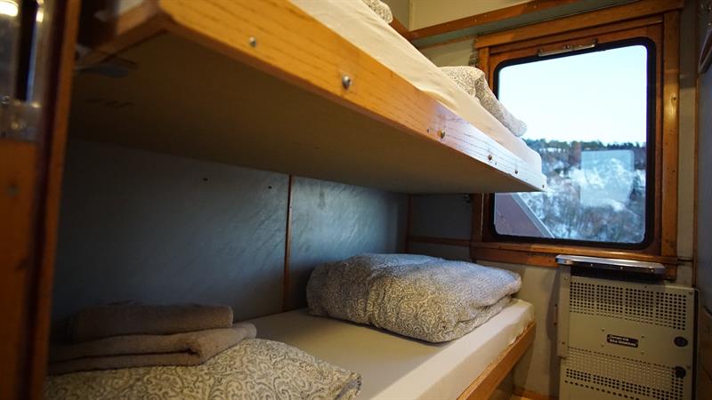 The rooms are kept virtually identical to when the wagon was in operation. The sleeping carriage and the sanitary carriage are separated from the other cars by a distance of about 20 meters where there is a large seating area. This is reserved for overnight guests. Here you can enjoy the silence and calm with something good in the glass. In connection with the sleeping carriage there is a sanitary carriage with toilets, showers and a small drying room.