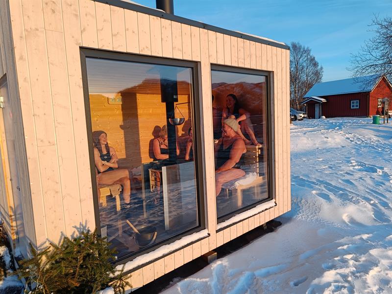 Dråpen Sauna is located in the outdoor area of Angelskjæret in Namsos, a 10-minute walk from downtown Namsos. The sauna is situated on the beach, right by the water's edge, and is open for rental year-round from 06:00 to 21:00. There is free parking 50 meters from the sauna. Changing rooms are available in the Namsen Ice Bathing Club's bathhouse right next door.